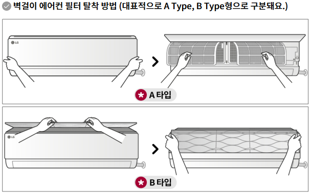 다음은 가정에서 손쉽게 할 수 있는 벽걸이 에어컨 필터 및 외부 청소 방법을 안내해드리겠습니다.